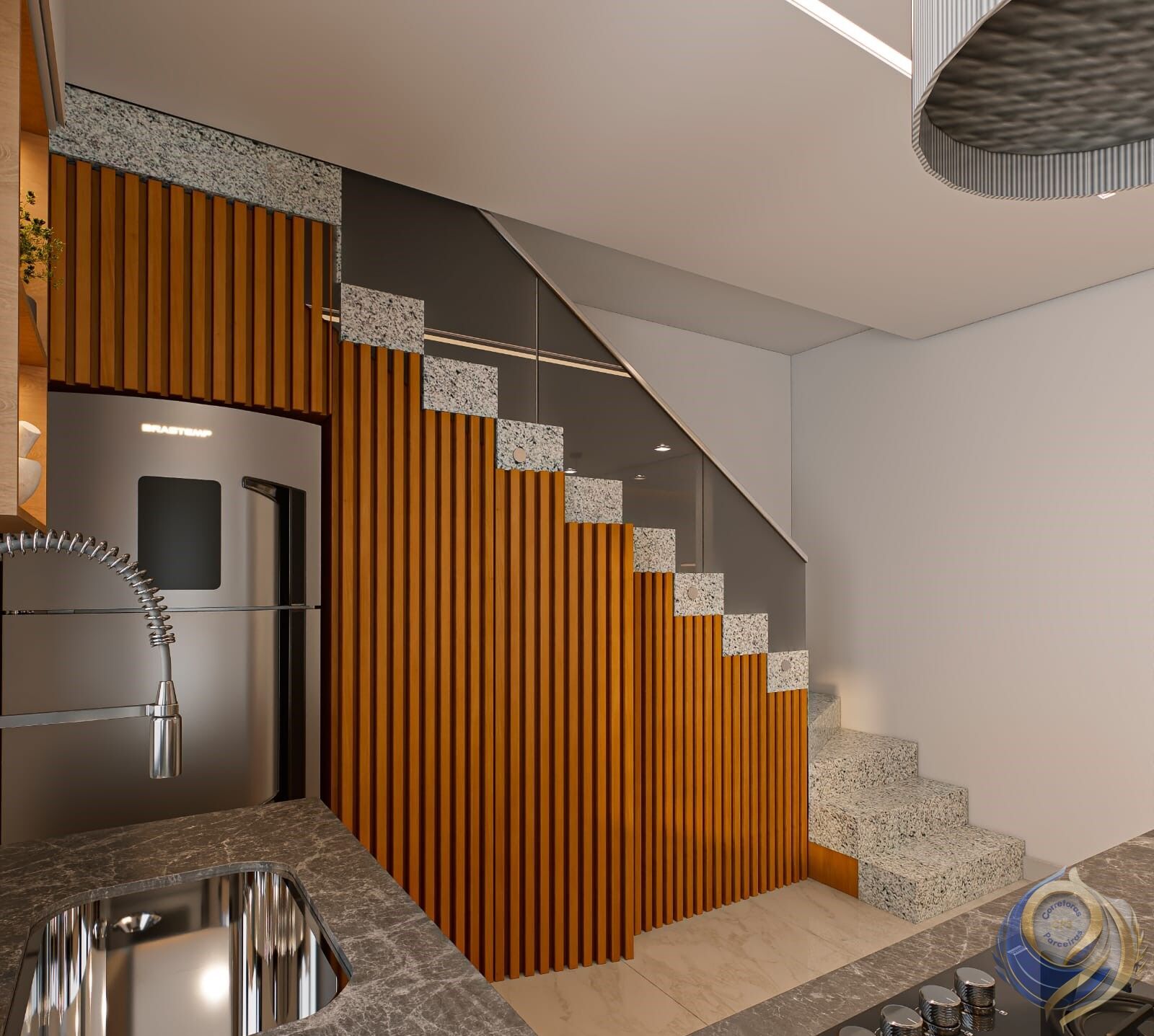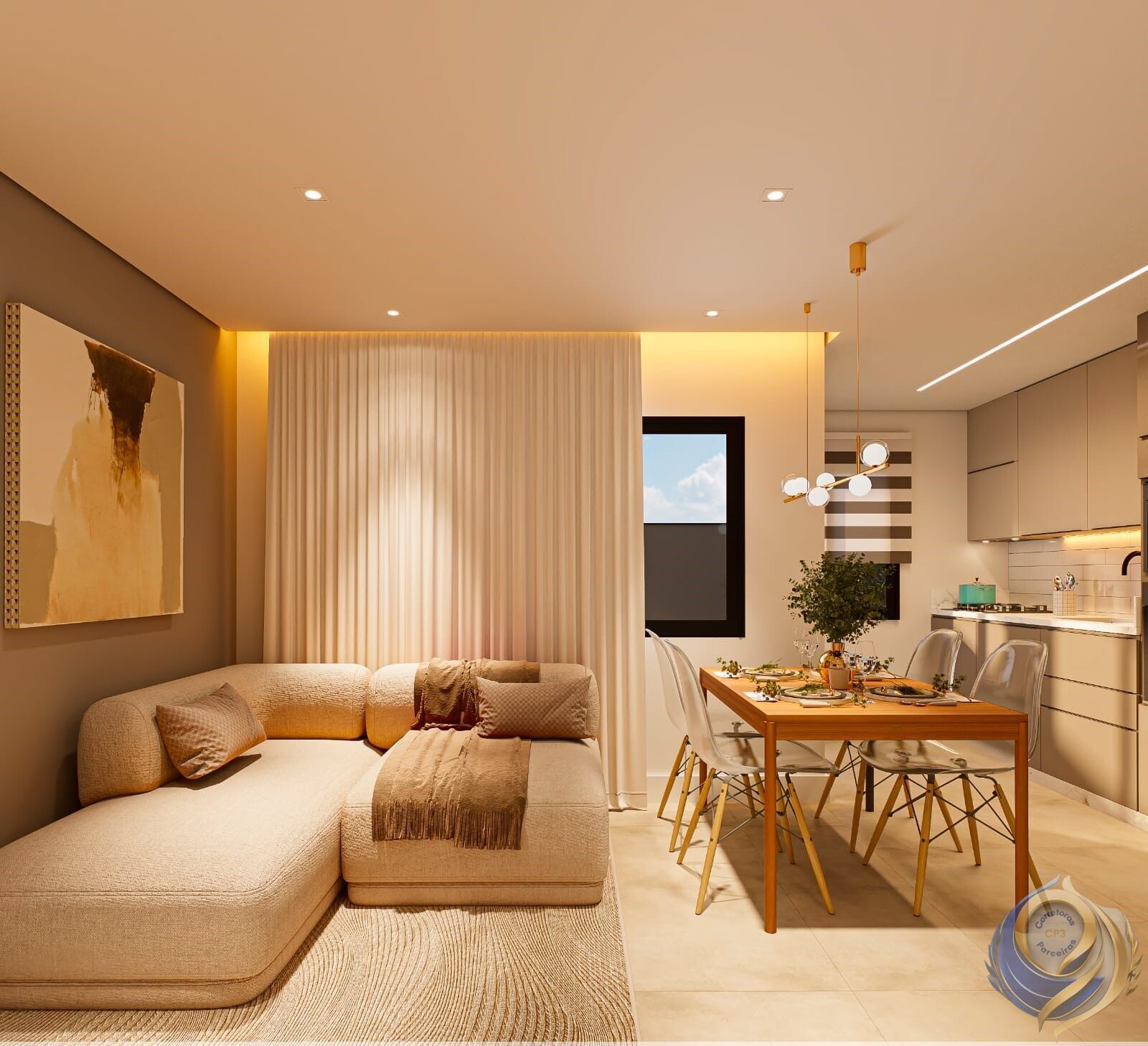 ✨ Acabamento moderno com porcelanato nas áreas sociais e piso laminado nos dormitórios