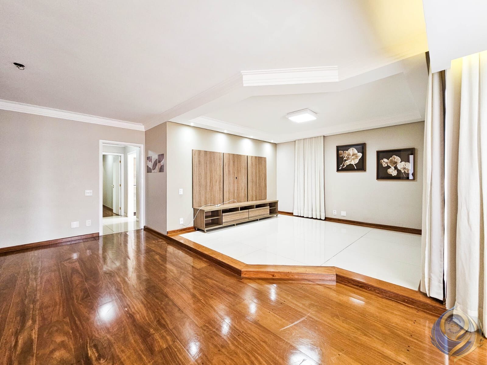 * Sala espaçosa para 2 ambientes, perfeita para receber convidados com elegância e aconchego