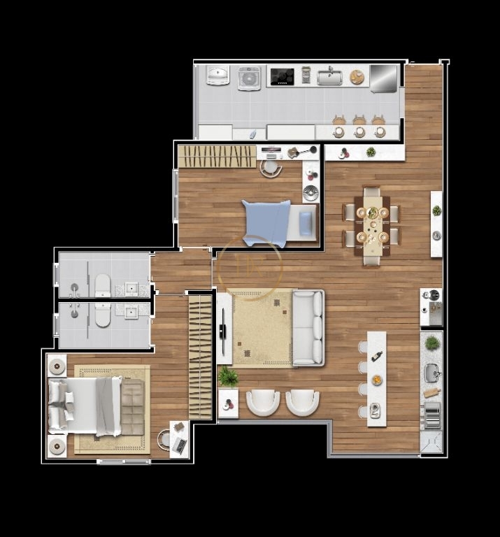2 Dormitórios, sendo 1 suíte2 Banheiros1 VagaGaragem Coberta1 Sala de TV1 Sala de jantar1 Sala de estar1 Área de serviço
